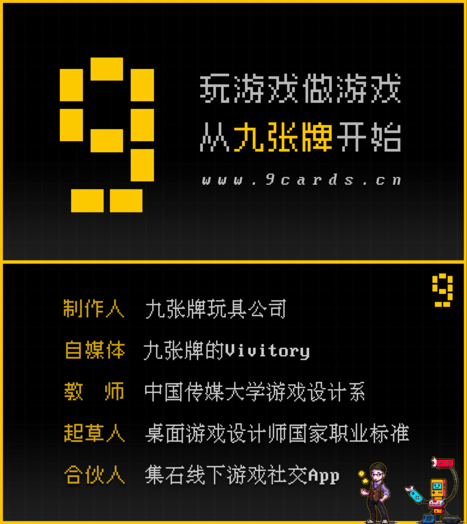 玩游戏 「Air系列」“仅凭”九张牌,就能给你完整的游戏体验 『Pro系列』“突破”九张牌限制,Pro就有Pro的道理 点击查看合集 > 点击查看玩法 > 点击查看玩法 > 点击查看玩法 > 点击查看玩法 > 点击查看玩法 > 点击查看玩法 > 点击查看玩法 > 点击查看玩法 > 点击查看玩法 > 做游戏 看视频 桌游评测 游戏创作必修课 游戏灵感库 游戏人专访 读文章 桌面游戏设计师国家职业标准 桌游玩法思维导图及败家审判 投稿件 原创游戏投稿问卷 联系我 九张牌(北京)玩具有限公司版权所有 | 京ICP备2023018663号 友情链接 玩家站点 游戏创作赞助人 B站频道 中国传媒大学 游卡桌游 集石
